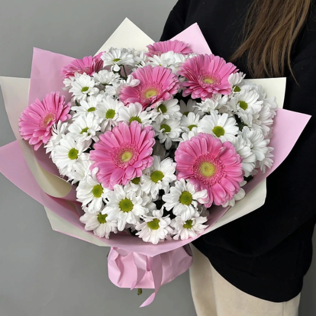 Pembe Gerbera ve Papatya buketi